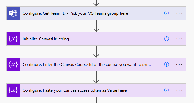 In this step, you will have to configure the Flow so it works for your MS Teams group and your Canvas shell.